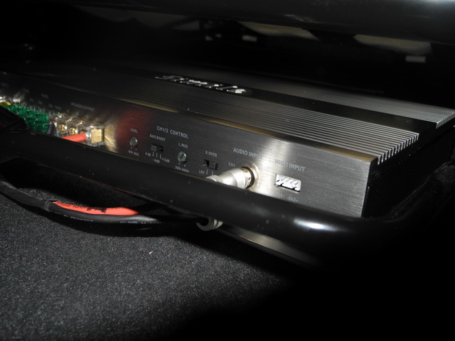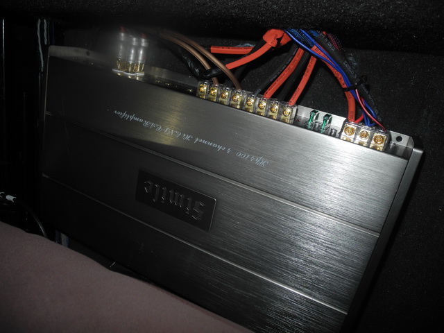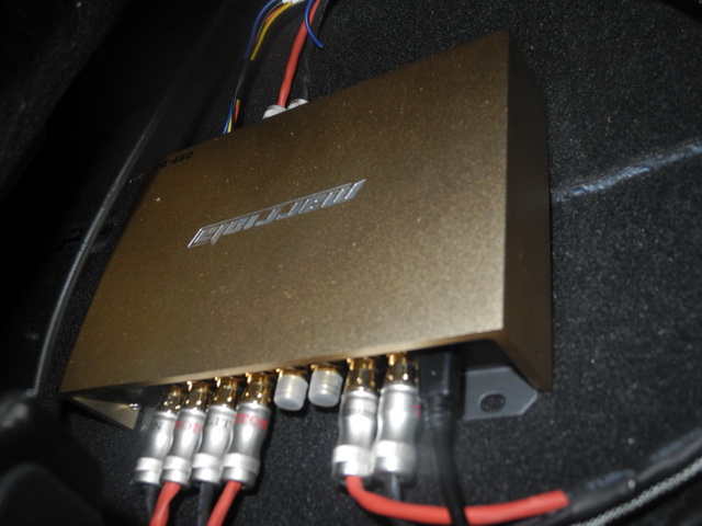 虽然车主没有要求更换原车主机,但是增加了一台DSP解码器,确保了音源品质。推动前声场喇叭的功放是一台诗蔓HP4100功放,后声场同轴喇叭用原车主机推动。诗蔓SPL250低音喇叭则是由一台诗蔓ST1200功放单独推动。分工明确,搭配十分恰当,充分利用了器材,确保了音质效果。